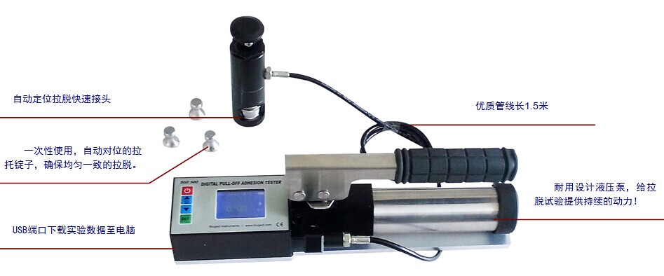 500型數顯拉開法附著力測試儀是我公司參照國外同類產品最新開發出來的一款智能附著力測試儀器,它通過液壓對特定面積的涂層進行拉脫測試,拉脫力可通過數字顯示器精確顯示,并有兩種不同的單位MPa和psi選擇。