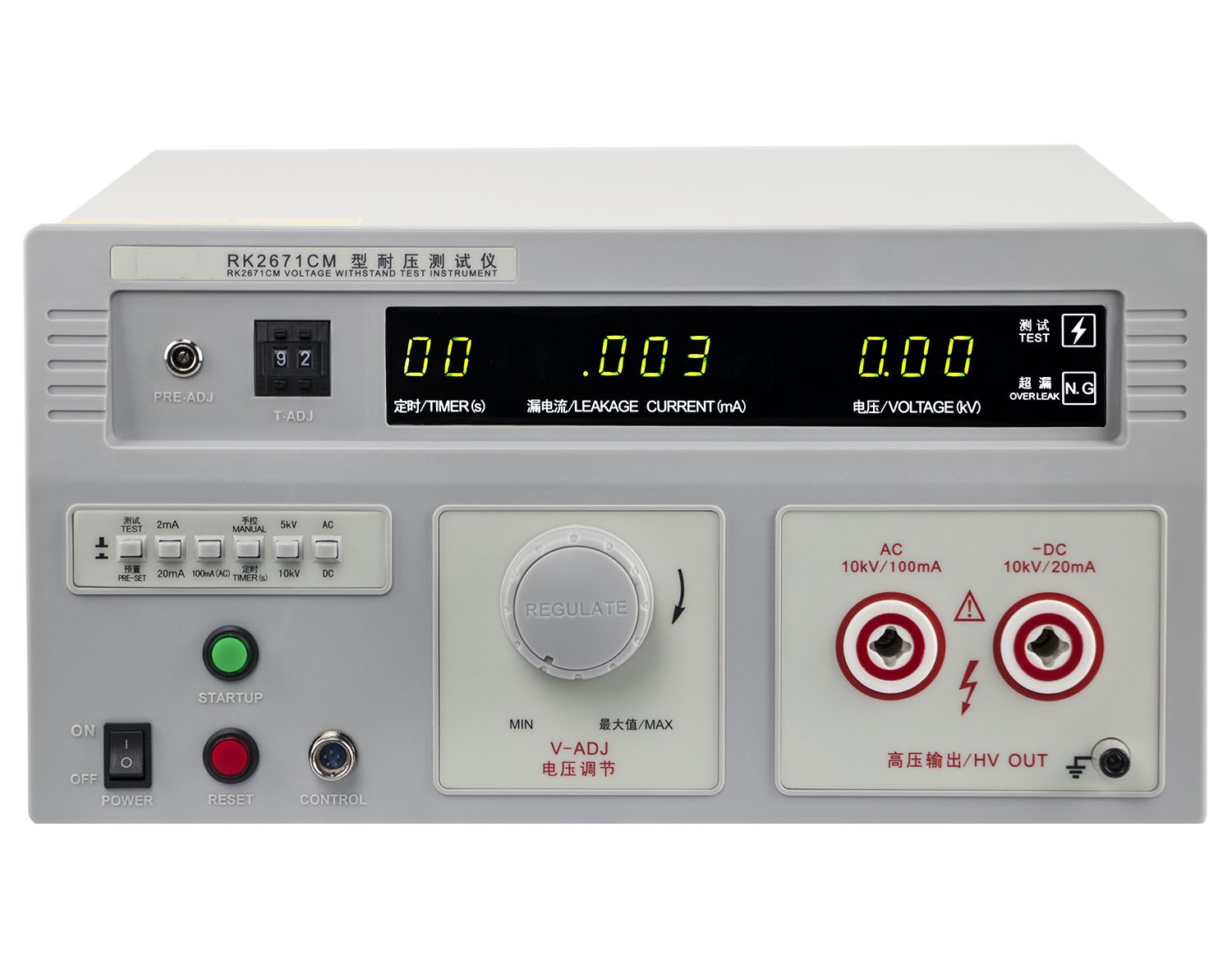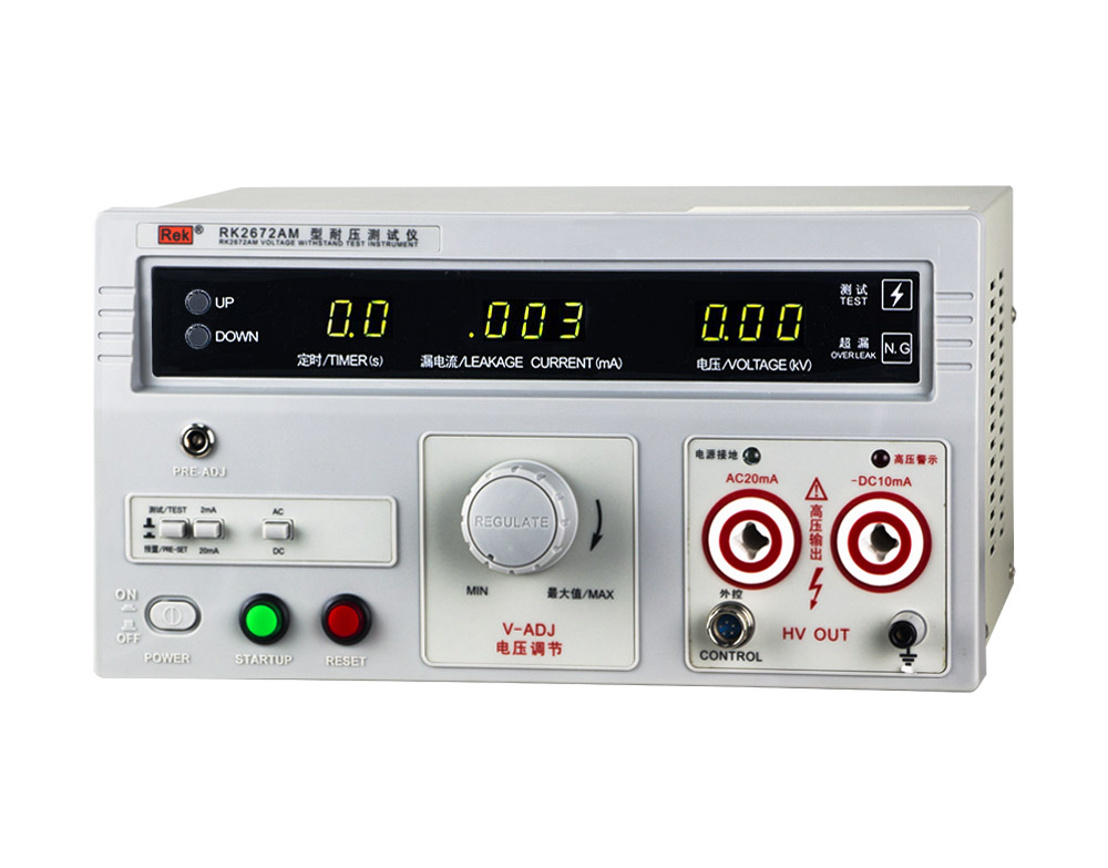 RK2670AM型耐壓測試儀是測量耐壓強度的儀器,可以直觀、準確、快速地測試各種被測對象的擊穿電壓、漏電流等電氣安全性能指標,并可以作為高壓源用來測試元器件和整機性能。
