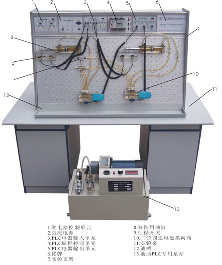 氣動-PLC控制實驗臺是根據《液壓與氣壓傳動》、《氣動控制技術》等通用教材內容要求,參考廣大師生的建議,精心設計而成。該系統除了可以進行常規的氣動基本控制回路實驗外,還可進行模擬氣動控制技術應用實驗、氣動技術課程設計,以及可編程序控制器(PLC)學習及其基本應用實驗等,是機電完美結合的典型實驗設備。