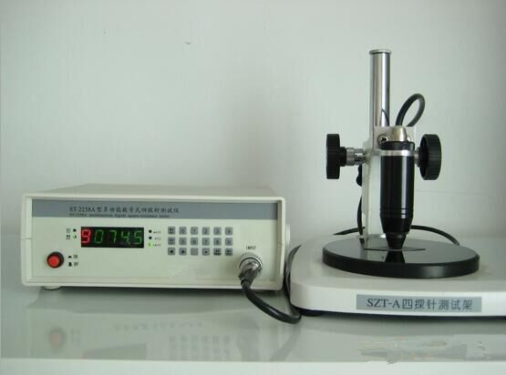 ST2258A型多功能數(shù)字式四探針測試儀是運用四探針測量原理的多用途綜合測量裝置,它可以測量片狀、塊狀半導體材料的電阻率,擴散層的薄層電阻(亦稱方塊電阻)。換上四端子測試夾具,還可對電阻器體電阻、金屬導體的低、中值電阻以及開關類接觸電阻進行測量。