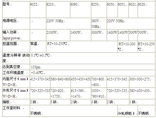 注:6030A、6030B、6050B帶進氣閥門控制,除6090、6210和BPH系列配真空泵外,其余型號均不配真空泵。