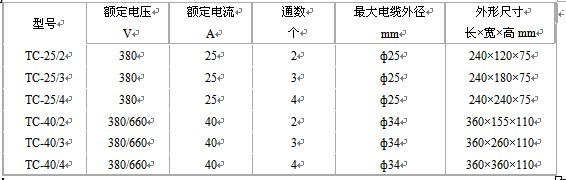適用于有瓦斯及煤礦爆炸危險的煤礦井下,供電壓660V的交流50HZ、電流至200A的線路上,作為連接和分支動力電纜之用。