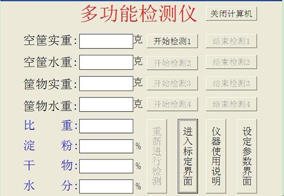 5)如果測量過程無誤,則系統自動計算并顯示:比重、淀粉、干物及水分的數值。
