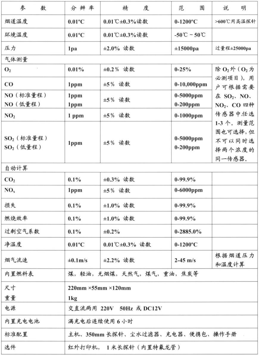 可同時測量O2和3個污染氣體以及煙氣溫度,環境溫度,煙道壓力