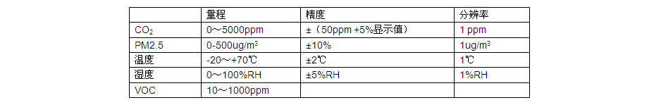 產品型號:A1(PM2.5、CO2、VOC、溫濕度)