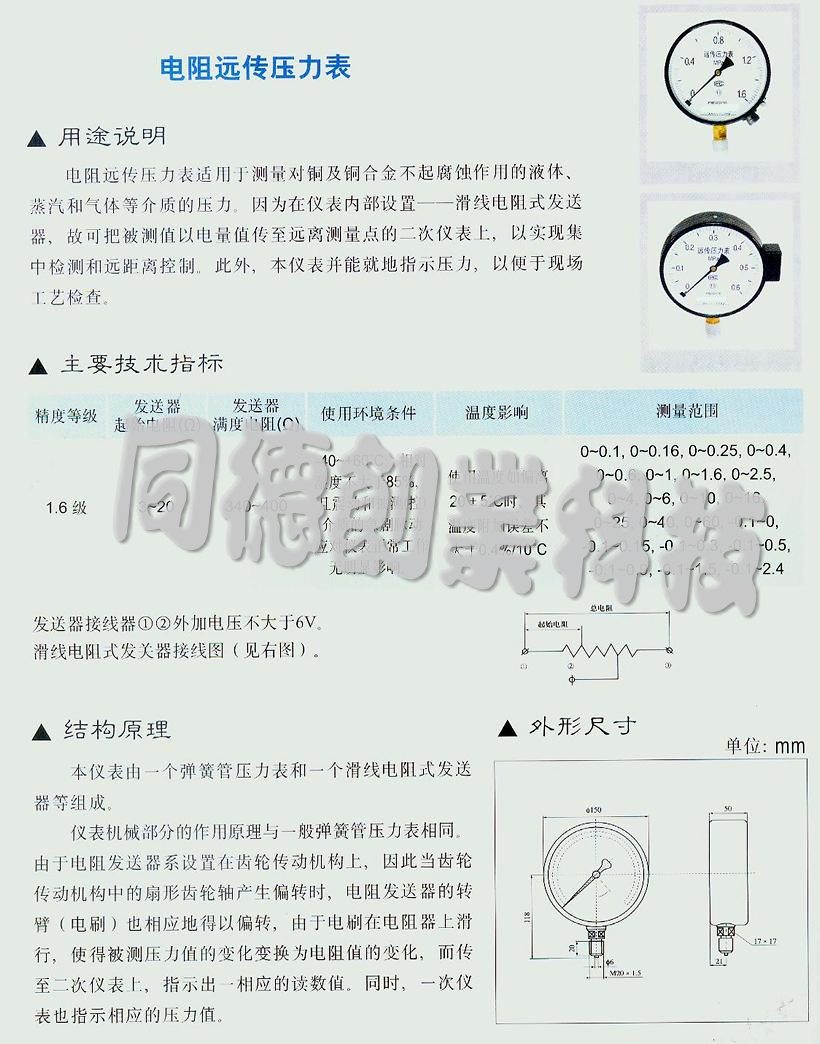 電阻遠傳壓力表 型號::KY-YTZ-150