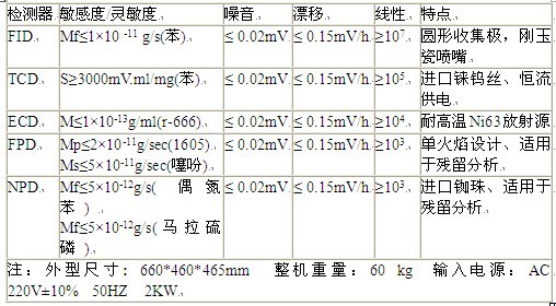 檢測器技術(shù)指標(biāo):