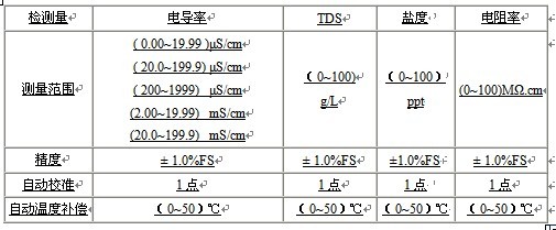 儀器在不更換電的情況下可切換電導率,電阻率,TDS,鹽度四個參數來測量。