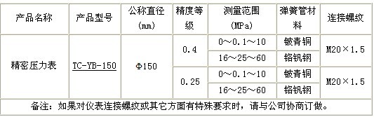 YB-150精密壓力表概述: